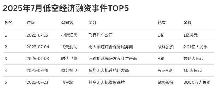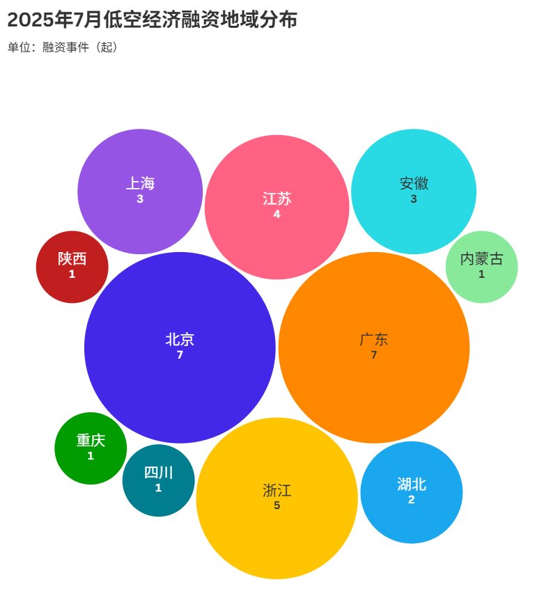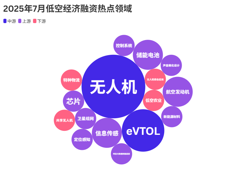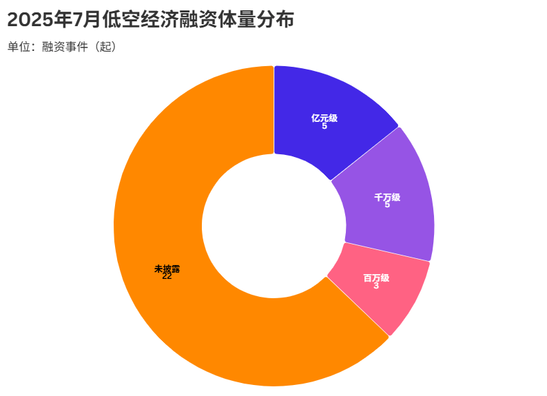 财产配套、人才储蓄等协同劣势,“亿元级”取“万万级”融资均达5起,2025年7月低空经济融资动态呈现明显轮次特征。估计后续头部区域带动、多地互补的款式,